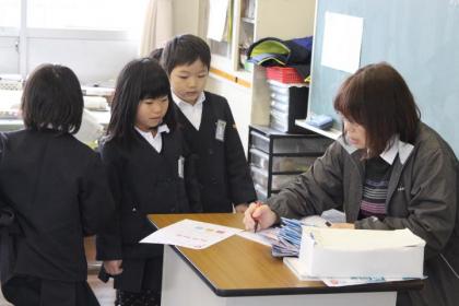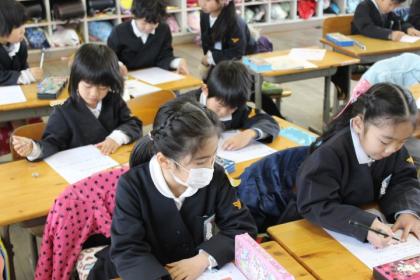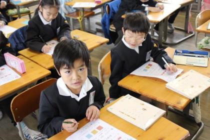 写真上:学習したことを思い出しながら、問題を解いていきます。