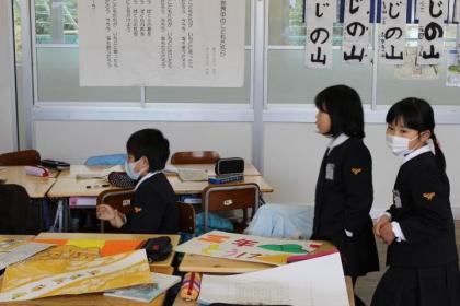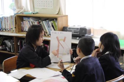 2月25日の学習発表会は、A組とB組が合同で、音楽室でおこないます。国語・社会・算数・理科のグループに分かれて、当日に向けて練習をがんばっています。