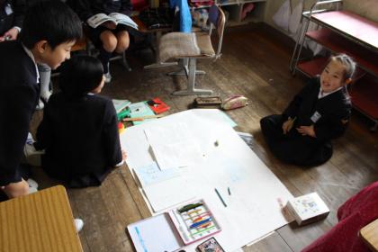 和歌山県のいろいろな地域や地域に尽くした人について、グループで調べ、まとめています。写真や図、絵なども入れながら、見やすいように工夫しながらがんばっています。
