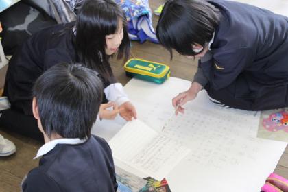 中:下書きはできたよ。あとは名前ペンでなぞろう。