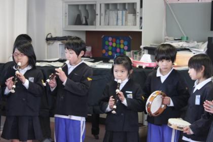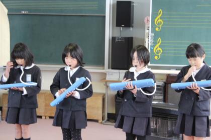授業参観(学習発表会)まであと4日となりました。今日は、当日発表会をおこなう音楽室で、練習をしました。発表の内容は、各グループとも当日のお楽しみなので、主に合奏の練習やリコーダー、歌を中心におこないました。
