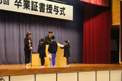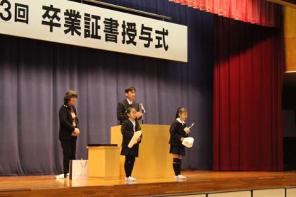 写真上:全校児童の前での表彰は、改めて誇らしい気持ちになります。