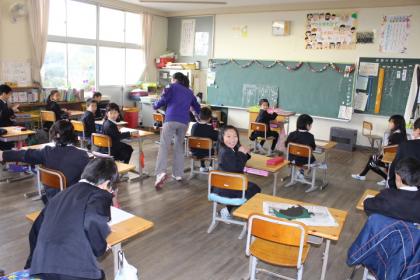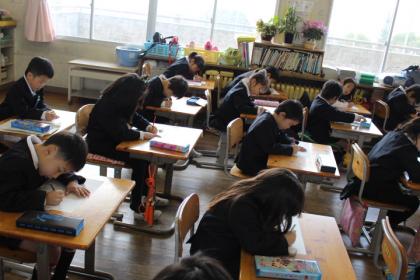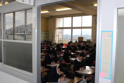 写真上:鉛筆の音しか聞こえないぐらい静かな4年生。真剣そのものです。