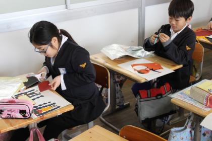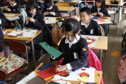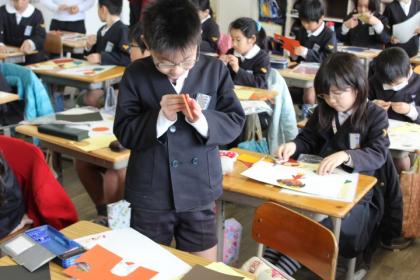 図工の時間に版画をしました。パーツごとに切って、貼ってと細かい作業がありますが、みんな集中して完成へ向けて、頑張って取り組んでいました。