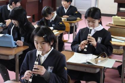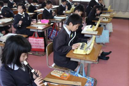 音楽的な力をどんどんつけていっている4年生。今日はせんりつ(旋律)づくりをしました。前時に、曲のまとまりのひみつを学習しています。今日つくったのは、曲に広がりを生むためのせんりつです。リコーダーやけんばんハーモニカで演奏して確かめながらつくりました!