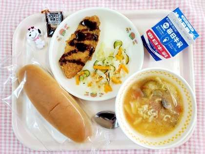 ミネストローネは、ABCマカロニが入っていて、どんな文字かを見るのが子どもたちは楽しいようです。
