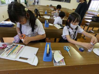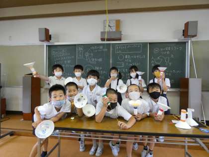 今日の3年生のふれあいルームは「紙皿と輪ゴムで飛ばして遊ぼう」でした。
