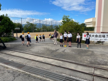いい天気の中、元気にあいさつ運動をがんばることができました。