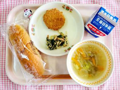 スープの入った給食の缶を開けると、生姜のいい匂いが。