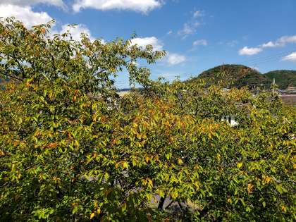 3階の廊下から見える桜の木の葉が色づき始めました。