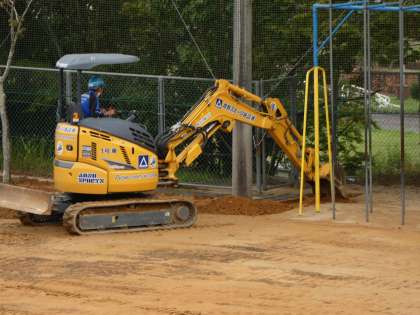 一方、運動場のすみの土をショベルカーで掘り起こしているのですが、細かい作業なのにきれいに掘り起こしていて、職人技でした。