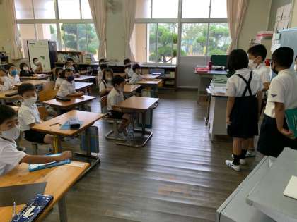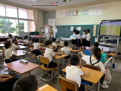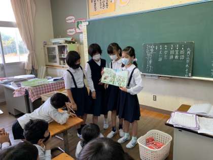 今日は図書委員会が朝の学習の時間に低学年の教室に行き、読み聞かせをしてくれました。