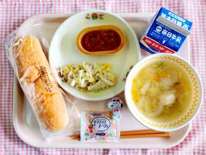 パンだけでも甘くておいしいですが、ジャムをつけるとやっぱりさらにおいしいかったです。給食当番の子どもたちも「あー。ジャムがある。」と喜んで運んでいきました。