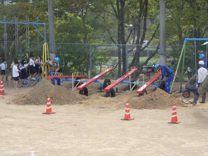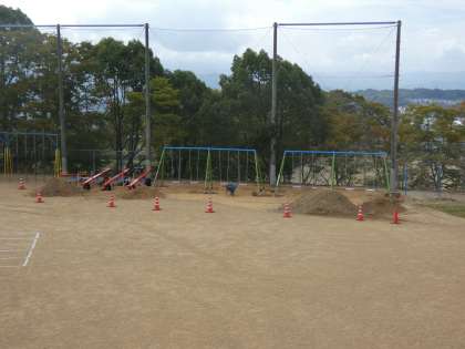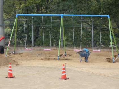 運動場の遊具、ブランコ・シーソーが撤去されていたのですが、少しずつできてきました。