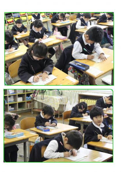 ☆ 1年生 書き初め会の練習
