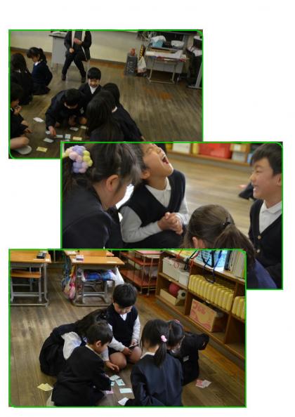 自分たちで作ったカルタを使って、みんなでカルタとりをしました。