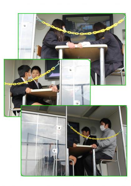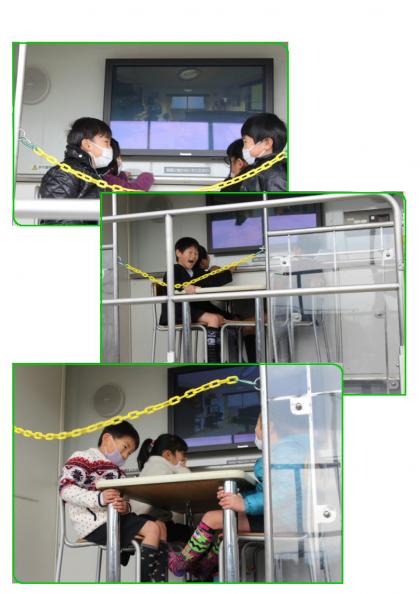 「怖い。」「しっかりつかまっとかないと倒れる。」と言いながら、地震の激しい揺れを感じることができたようです。