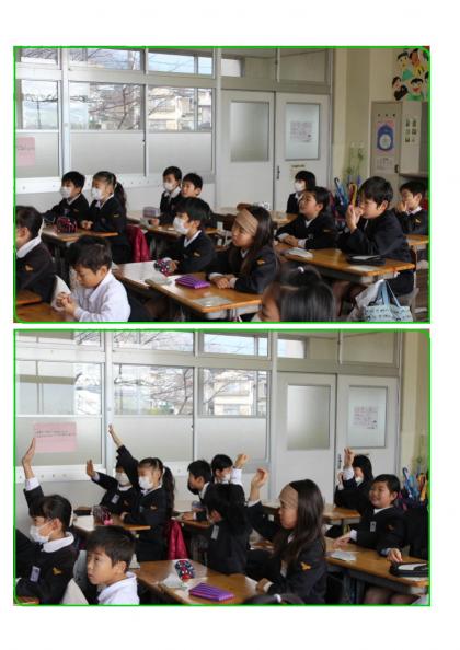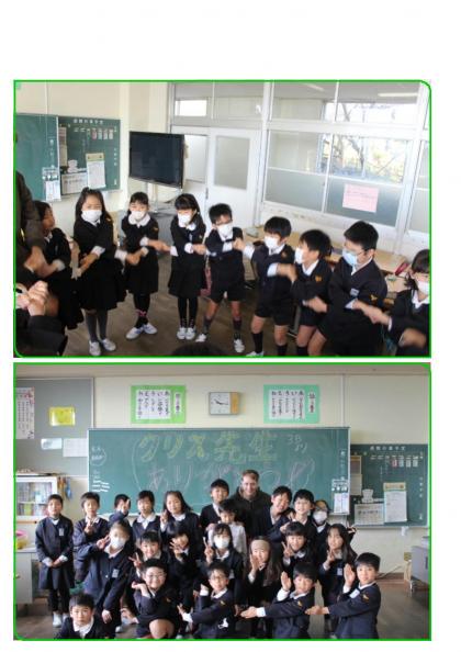 本日は、2時間目に英語の授業を行いました。まずは、ウォーミングアップでイギリスの年明けダンス。みんなで手をつないで踊りました。「手を放してはいけない」とクリス先生に言われたので、必死で活動していました。アップの後の内容は年明けにちなんで、「十二支」。十二支の動物たちの名前を英語で学習しました。また、動物たちの特徴を聞いて、その動物を当てるクイズをしました。みんな、ピンと手を挙げてますね。最後は、クリス先生と写真をパシャリ!一年間を締めくくるいい思い出になりましたね。
