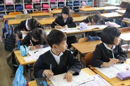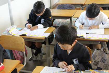 新出漢字を学習しました。初めて習う漢字なので、書き順、漢字の使い方をしっかり確認しながら、書いています。みんな落ち着いた学習態度で、1字1字丁寧に書こうとがんばって取り組んでいます。