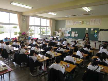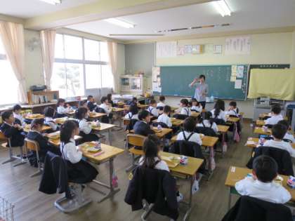 城山小学校では、今日から1年生の給食が始まりました。