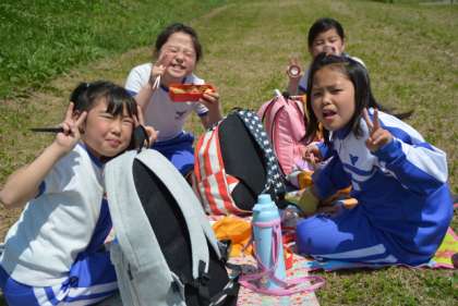写真上:お弁当の時間は最高!