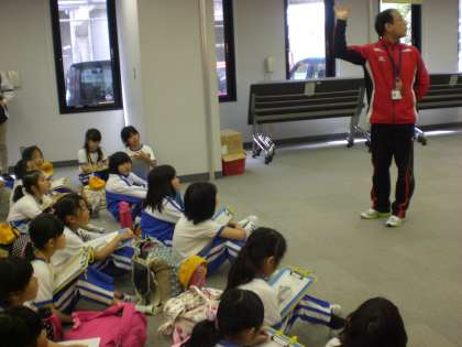職員の池田さんに館内を案内していただいて、大きな大きな器具庫や他の部屋、防火・防犯設備などについて詳しく知ることができました。