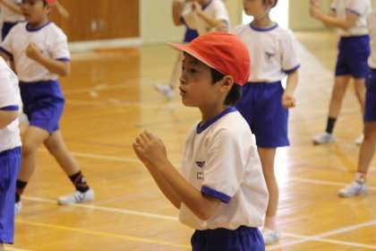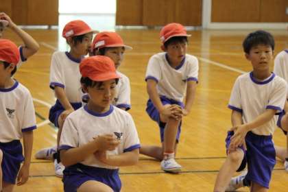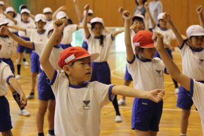 立ったり、座ったり、手を伸ばしたり、いろんな動きがあります。曲に合わせてきれいに形が決まっています。