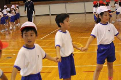 隊形移動では、先生の話をよく聞いて動くことができました。