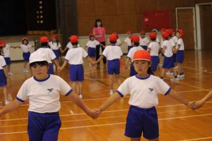 今日の1・2年生の運動会の練習は、ダンスの隊形移動を練習しました。