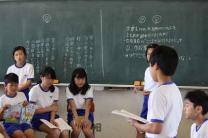 「はじめ」「なか」「おわり」の「はじめ」と「なか」はすぐに分かったのですが、「おわり」は意見が分かれました。そこで討論会形式で話し合いを行いました。根拠はもちろん教科書本文から。