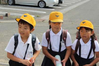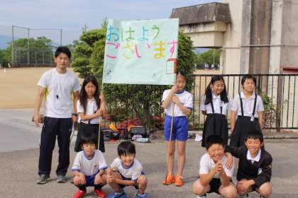 今日の担当は放送委員(4,5年のB組のメンバー)でした。お疲れ様でした。なお、6年生は運動会の朝練習のため、集団登校とあいさつ運動には出席できていません。
