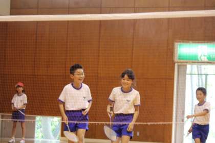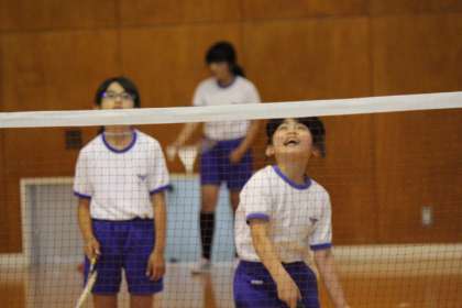 バトミントンクラブです。ペアを組み、試合を楽しんでいました。