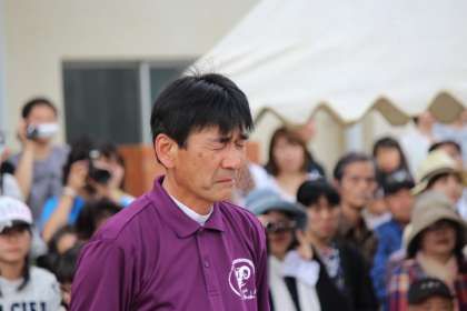 巨大な全員ピラミッドの後、感動のフィナーレ。糸賀先生の叫び。「退場ー!!!」