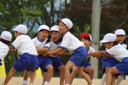 下:絶対に負けないぞ。 (1・2年生綱引き)