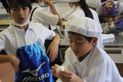 今日5Aは、家庭科の時間にゆでたまごを作りました。