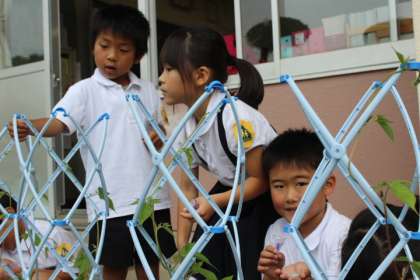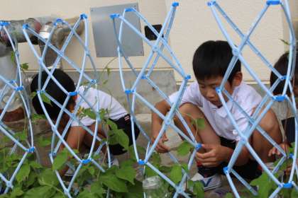 あさがおのつるが伸びてきたので、追肥をやりました。