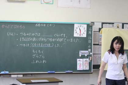 つるの高さや、葉っぱの大きさ、つるの様子は、自分の体を使って