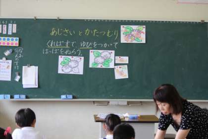 次回、絵の具であじさいをぬって仕上げるのが楽しみです。