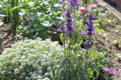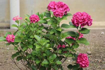 中:真っ赤なあじさい。かわいくけなげに咲いています。