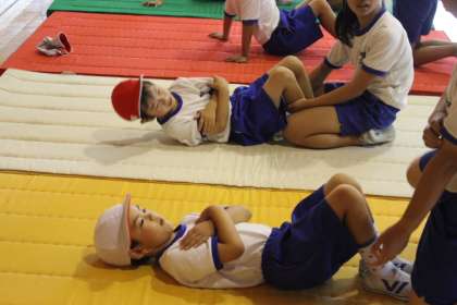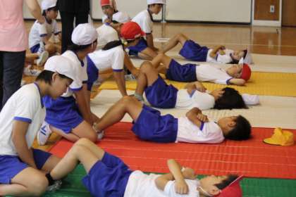 低学年の子の中には、どこに力を入れると起き上がれるのか、力を入れるってどういうことか わかりづらい子もいました。ちょっとコツをうまくできたようです。