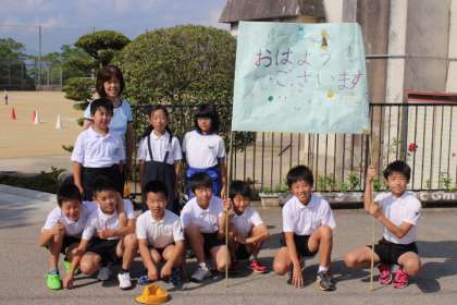 あいさつ運動。当番は、環境美化委員の人たちでした。決められた時間前に来て頑張ってくれた子もいます。元気いっぱいのあいさつを登校してくるみんなにしてくれました。ニッコリ笑顔もよかったね。