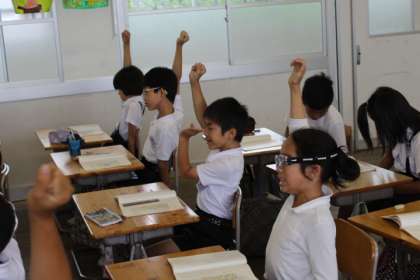 場面ごとに、世の中の様子や出来事のわかる言葉や文を探しました。戦争の話なので見つけるのは、難しそうです。でも、しっかり見つけることができました。