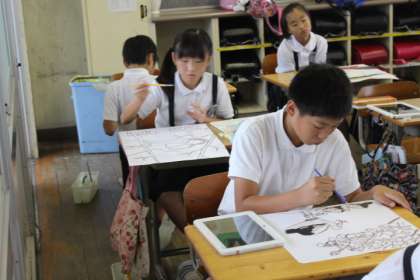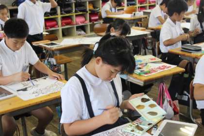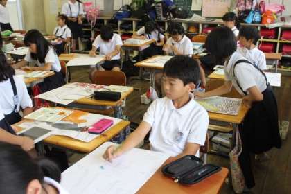 色は、小さな紙にためし塗りをしてから、画用紙に塗りました。どの作品も個性あふれ、きれいで丁寧に仕上がってきています。