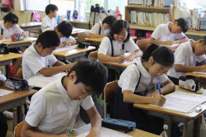 松尾先生が出張だったので、今日の国語の時間は、林スペシャル。林校長先生による漢字テストもありました。校長先生が読み上げてくださる問題を書き取っていきます。何が出題されるかわかりません。ほど良い緊張感の中、みんな 出来栄えはどうだったかな?