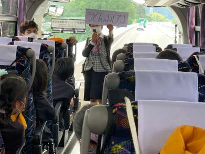 B組のバスではバスガイドさんが和歌山県出身の有名な方の