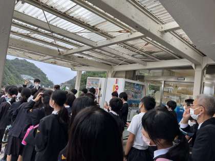 大地くじらの博物館に到着しました。ここではグループで行動しています。