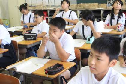 ☆ 6B 国語 公開日 2015/09/03 更新日 2015/09/03 6年生 9月3日(木) 今日の国語の時間、まずは、詩「せんねんまんねん」の音読から。自分の気に入った表現を工夫して読むことを目標に、ペアや、グループで読み合いました。 詩の音読が終わったら、熟語の成り立ちについて。漢字2字でできている熟語について、どのようなつくりになっているかを学習しました。今度の時間には、漢字辞典を使って熟語の成り立ちの関係を探していきますので、お楽しみに。 いいね(0)