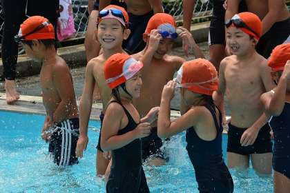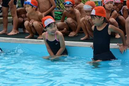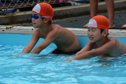 ☆ 1A 水泳(1) 公開日 2015/09/04 更新日 2015/09/04 1年生 9月4日(金) 1年生で最後の水泳でした。 顔つけができない子がたくさんいた6月に比べ、 みんな ふしうきができるようになり、 水泳大好きな子ども達になりました。 今日は、泳力をはかりました。 どの子もふしうきのあと、バタバタをつけて 一生けん命泳ぎました。 小プールの端まで泳げる子も数人いました。 みんな、よくがんばりました。 いいね(0)