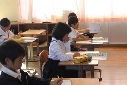 みんな、教科書のイラストや説明をよく見ながら、かけ算の意味をよく