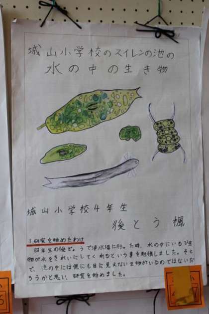 下:「城山小学校のスイレンの池の水の中の生き物」